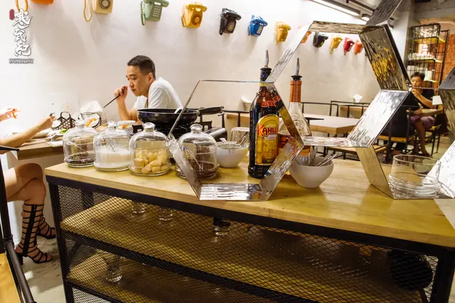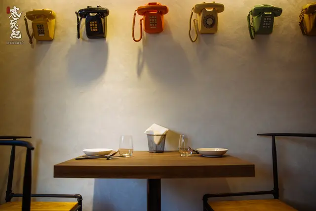 美式中帶著一些復古風,牆面上這整排五顏六色的古早味電話機,現在應該很多年輕人連看都沒看過了吧.........