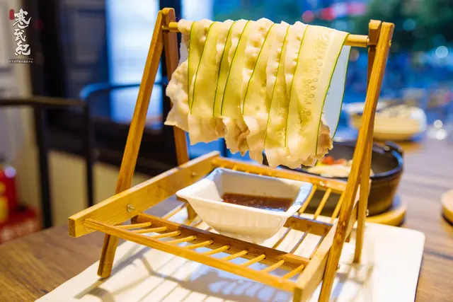 晾菜晾肉架(298元):薄切的五花肉,這道菜應該是師法雲南大薄片,特別之處在於每片肉中間都夾上了一片更薄去逆小黃瓜,晾在特製的肉架上,造型十分典雅吸睛,沾上特製的蒜蓉醬滋味頗為清爽!