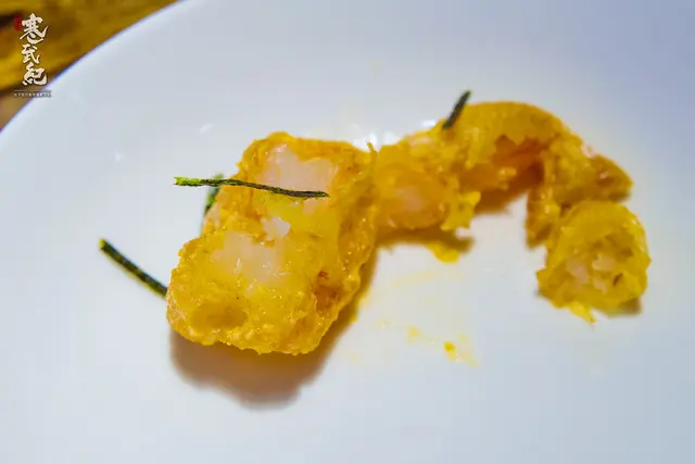 金沙歲月愛蝦球(358元):紮實飽滿脆口的蝦球裹上鹹蛋黃製成的外皮,吃起來滋味相當迷人!