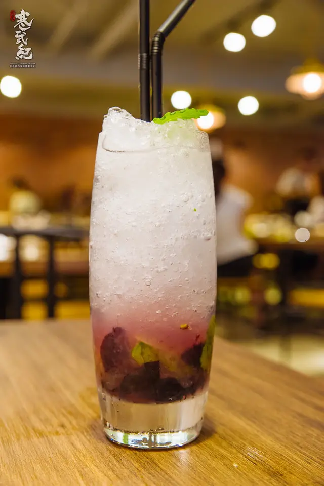 葡萄賓治泡泡(148元):加入了許多新鮮的葡萄,吃得到葡萄果粒,加入了賓治汽水和五味子糖,滿滿的清涼薄荷味。
