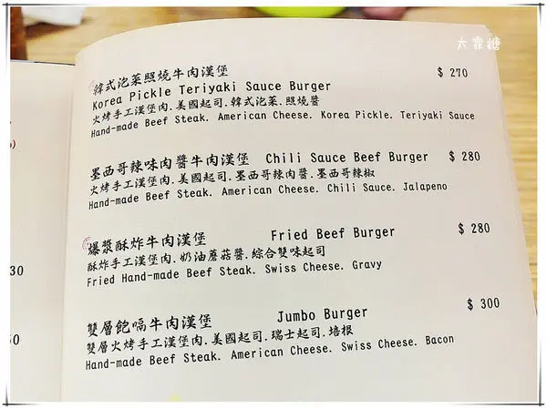 這裡不只賣美式漢堡,還有義大利麵、燉飯、三明治、早午餐...等等