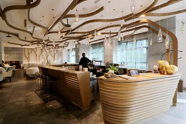 飯店整體空間以「泉」的意象貫穿,並利用柔順蜿蜒的曲線