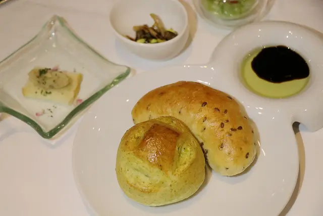 餐前的歐式麵包柔軟香甜~可以搭配一旁的紅酒醋醬享用