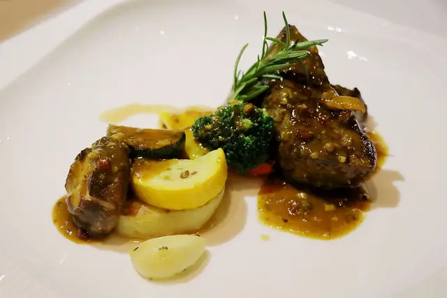 因為是將歐法料理和台菜結合~口味有紅酒牛肉/蒜味田螺/紅槽鮮蔬
