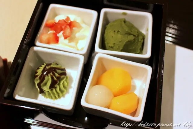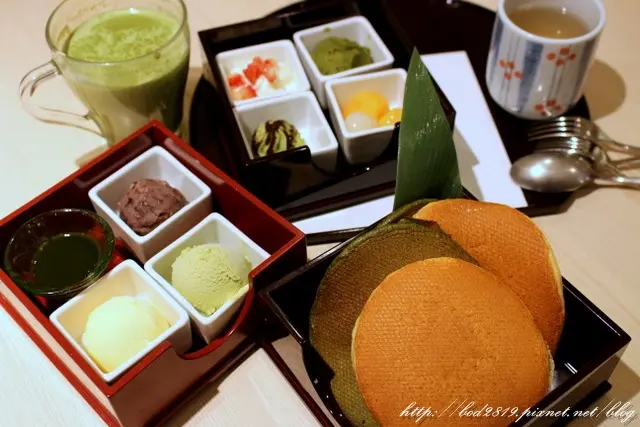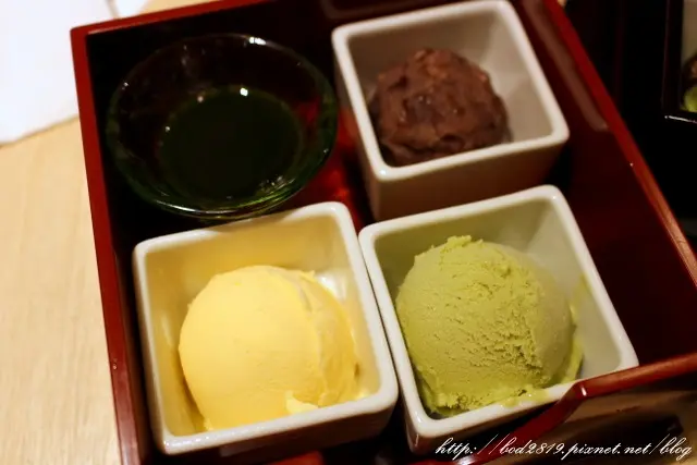 第二層紅豆沙/抹茶沾醬/抹茶冰淇淋/香草冰淇淋