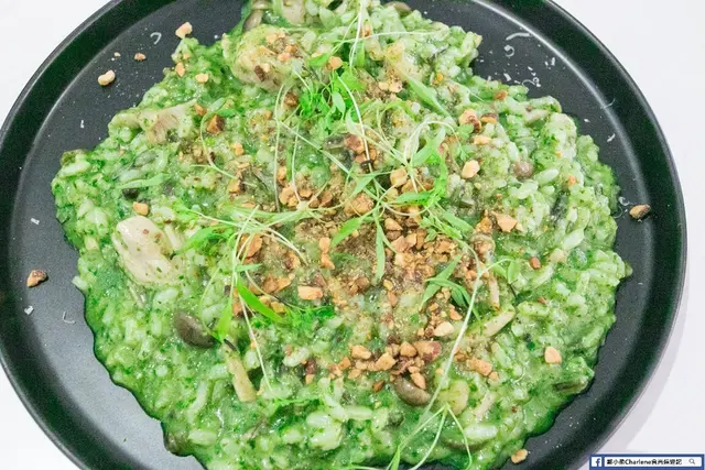 燉飯是蘿勒口味,吃來的口感很棒,燉飯溼潤微軟