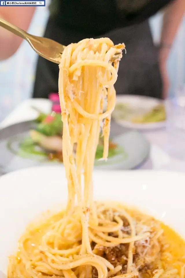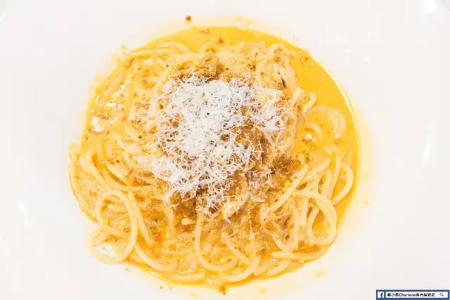 麵體細而Q滑有彈性,加入不少帕達諾起司及風味濃郁的櫻花蝦屑,