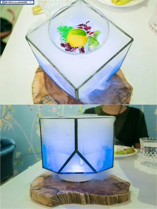 一上桌大家都好驚艷!夢幻的藍色液體,冒出白色乾冰,看起來好夢幻啊~