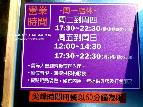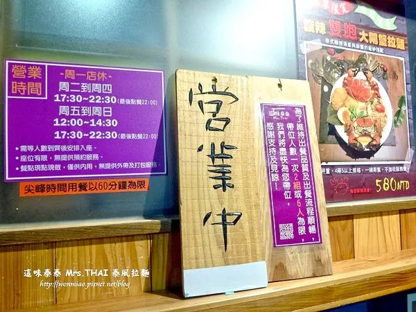 市民大道附近的餐廳,很多都只有晚上才有營業, 這味泰泰除了星期五~星期日中午也有加碼營業外,其餘平日就只有晚上有營業,另外星期一公休,大家可別白跑了~