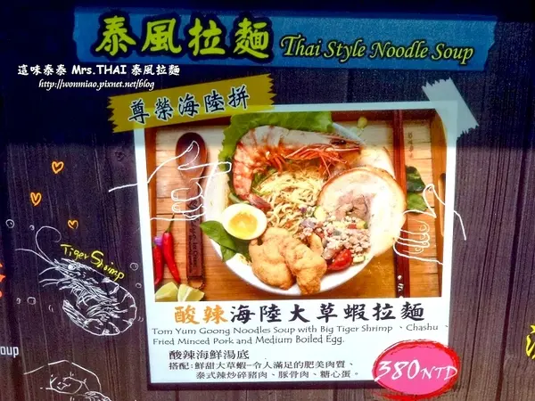 店名取得非常可愛的這味泰泰(Mr. THAI),賣的是個人十分熱愛的泰風料理。日本拉麵加入泰國魂,讓人十分期待究竟會撞擊出怎樣的火花? 招牌下看不懂的泰文,對於曾經去過泰國多次的我來說,感覺非常有親切感!
