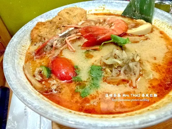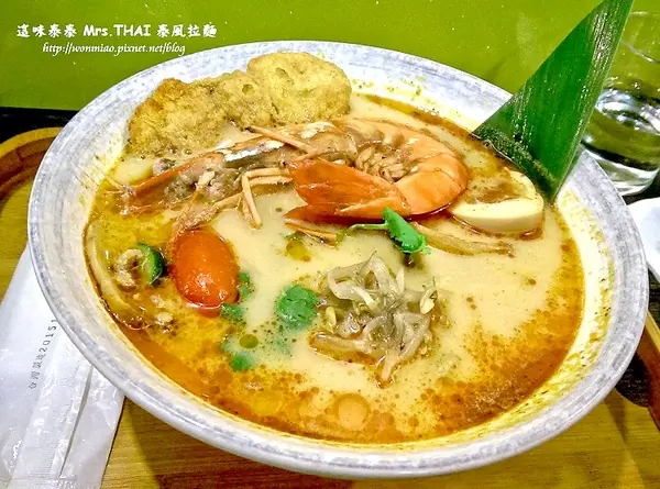 不大酸不大辣的基本調味,走的是溫和版的泰國風,香甜的椰香濃郁湯頭讓人聞香後忍不住整個食指大動! 麵條是屬於細圓麵,彈性自然不若粗麵條來得好,吸附湯汁的麵入口後再配上一口配料,多種配料讓人有多種滋味口感的不同滿足!大草蝦鮮度讓人非常歐露~鮮美中有著甘甜,肉質緊實彈牙,令人吮指回味再三!!