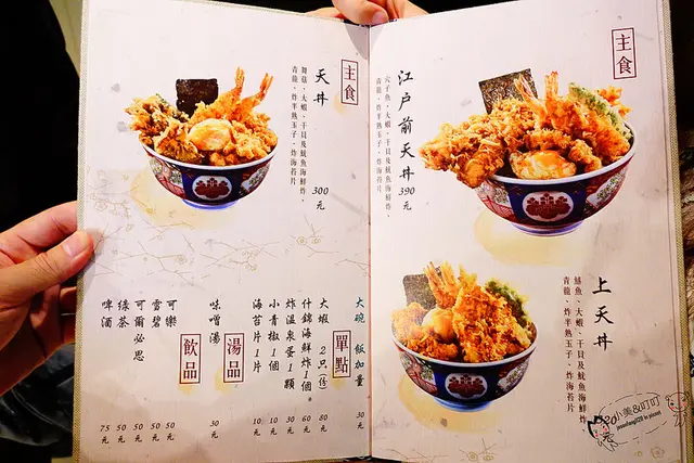 話說在東京日本橋本店只賣唯一的江戶前天丼在台灣還多了兩種選項,至於差異性就請各位客官看前方菜單啦~