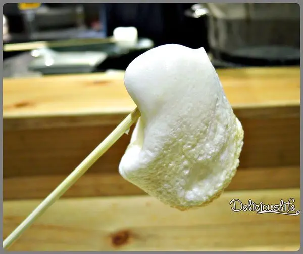 將棉花糖沾上XO白蘭地後烘烤至膨脹~