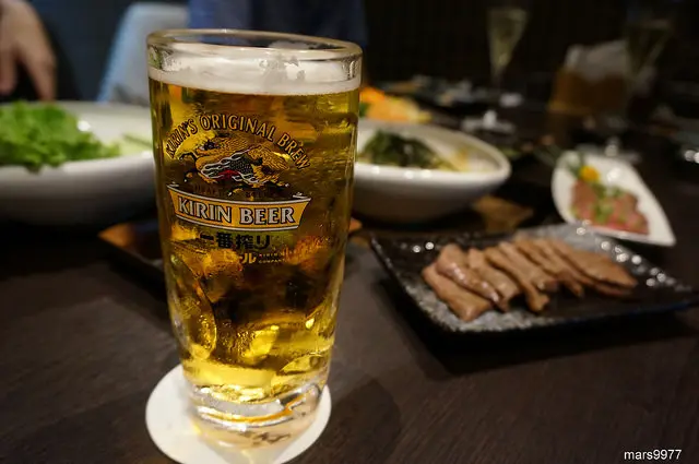這次來開懷的是麒麟生啤酒,苦中帶甘的金黃氣息,漂浮著的雪白泡沫