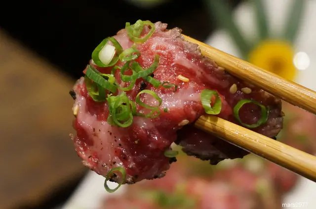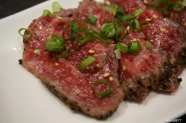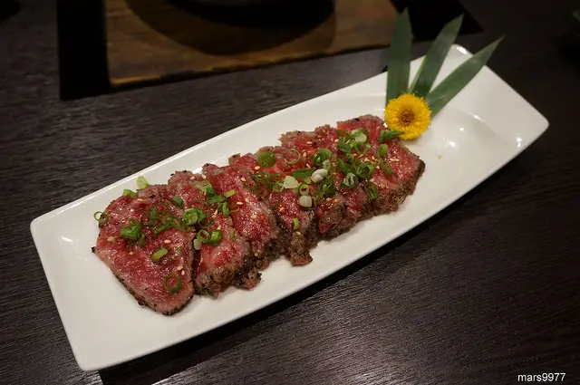 這一道很棒的炙燒生牛肉,讓人好愛他的色澤