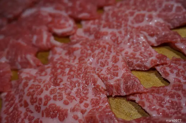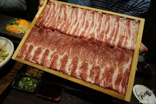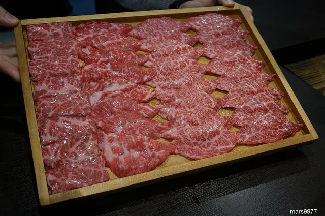而切成略為菱狀如同魚兒般的上選牛,牛五花,厚切牛小排等
