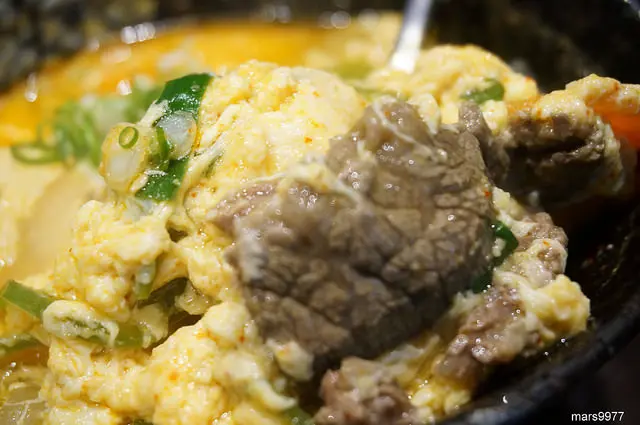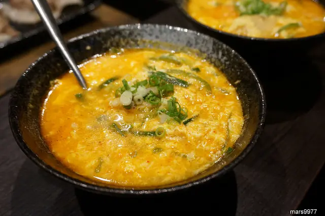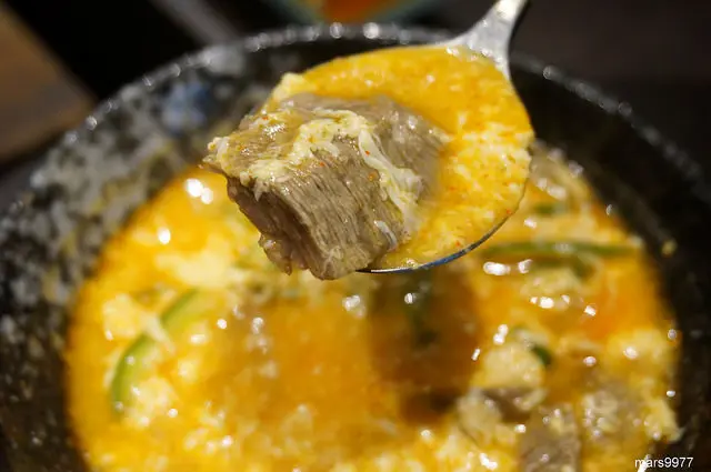 一匙下去,撈起的蛋花牛肉湯汁辣味噌的氣息