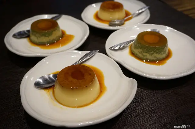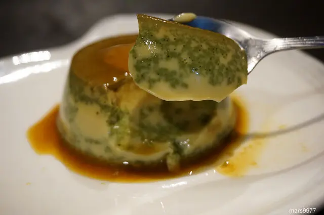 而加上抹茶的風味來說也將抹茶獨有的澀味將布丁一同結合著