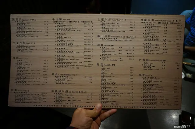炭火燒肉 無敵 Muteki 的特色菜單,一大塊的木板相當有趣
