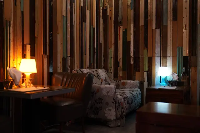 很喜歡這間小包廂,相當的復古,搭著各種色彩的木頭牆面、配上木桌、台燈、沙發相當別有風情。