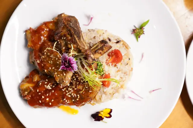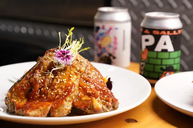 這是一個中西合併的概念,來自南庄的桂花釀混搭美式的BBQ醬,如美式拳擊的BBQ醬在嘴裡首當其衝,而桂花清香在尾韻慢慢一點一點地浮出檯面,兩國的文化合併,也能蹦出新滋味!燉飯表現也相當搶眼,菌菇的香氣以及奶油的濃郁,滿滿的鮮味,全部濃縮在這些米飯裡,收汁細膩,將美味一次送入嘴裡。