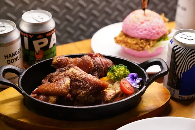 目前的活動是尾牙春酒季耶!消費$888 就送一瓶精釀啤酒,另外還新推出了粉紅豬古力漢堡,就是在 IG 燒得火熱的漢堡。