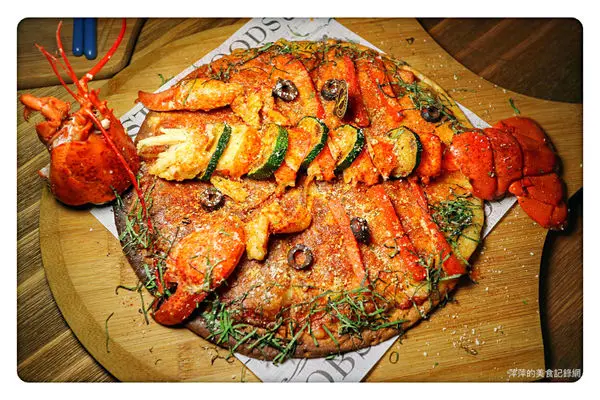 用紮實的乳酪薄片餅皮搭配一整隻的龍蝦