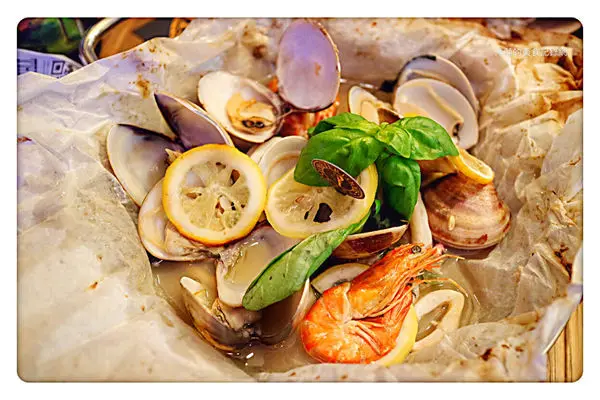 延伸紙包魚的概念,選用產地直送的大蛤、花枝