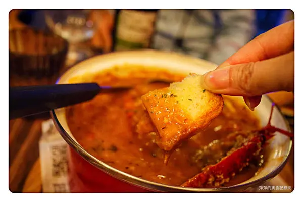 法式麵包沾上濃郁的湯汁,增添了入口濕潤感