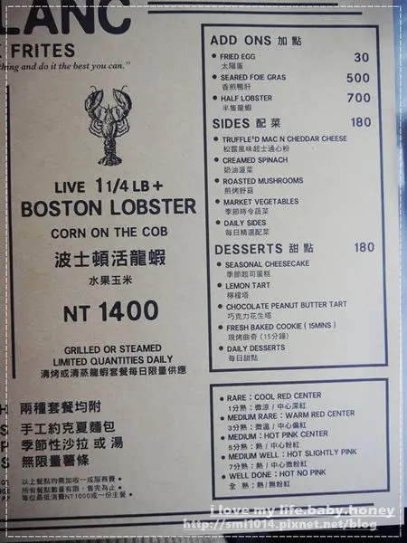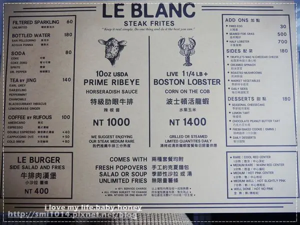 LE BLANC很適合有選擇障礙的人來用餐,因為主餐只有牛排、龍蝦、牛排肉漢堡可以選