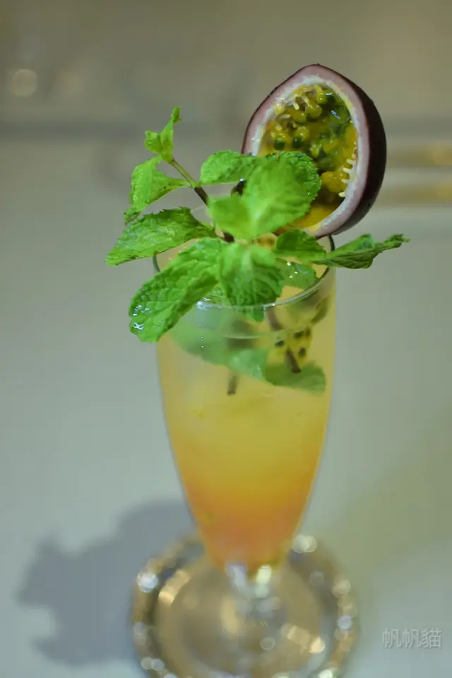 變完裝,心滿意足地享用美味餐點,我們今天是吃兩個套餐加上兩杯特調,第一杯是甜蜜樹屋用薄荷葉跟百香果增加香氣,味道是酸甜的口感,解膩又開胃。