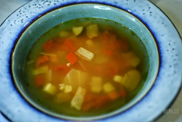 湯品,則是義式蔬菜湯,裡面加很多水果熬煮,所以比起一般的蔬菜湯,多了水果的香甜味。