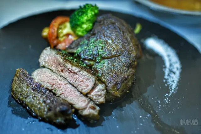 肋眼牛排七分熟:不干不柴,吃起來略帶咬勁,一般上菜是七分熟,但我覺得五分熟還是比較好的品嘗熟度。
