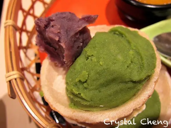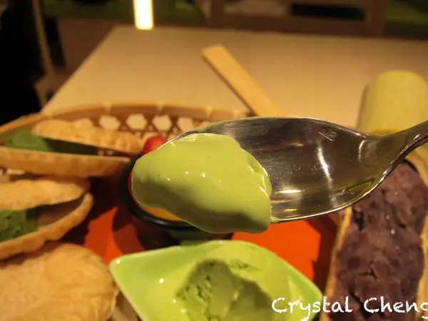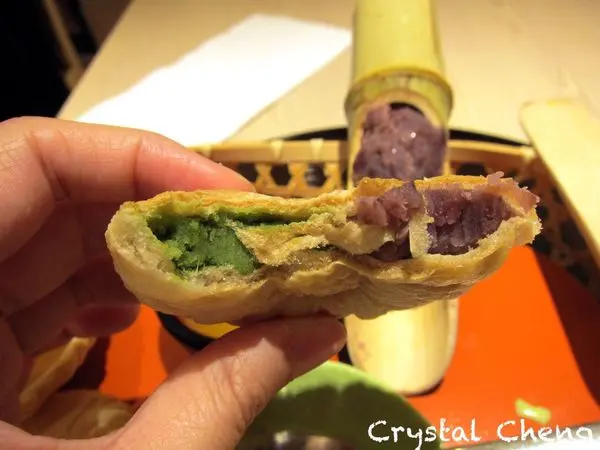 吃起來抹茶味道不會太濃,倒是有點像白豆沙的味道,