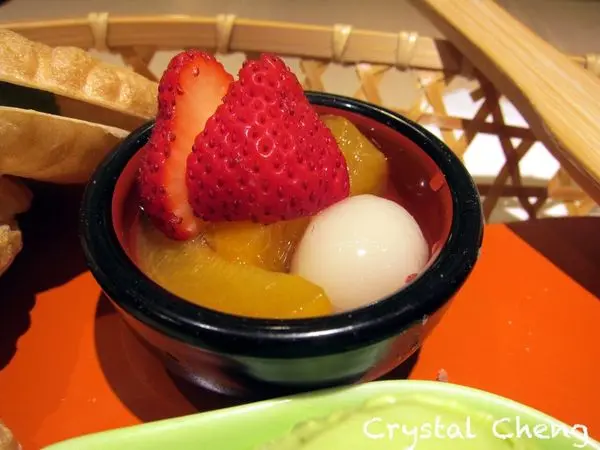 還有一小碗的水果,草莓是新鮮的,其他的是罐頭,一小顆白玉好Q喔!