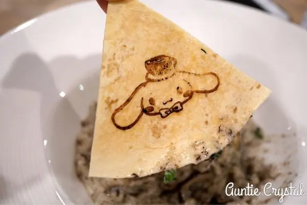 因為燉飯偏軟一點,所以搭著脆脆的脆餅一起吃,口感更有層次,非常搭,