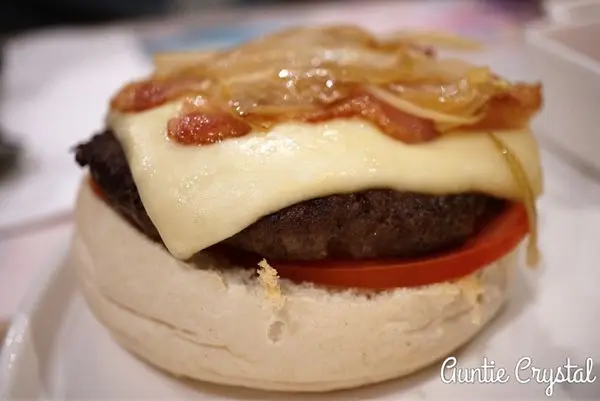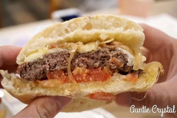厚厚漢堡肉是使用美國牛,再加上法國Emmental起司,
