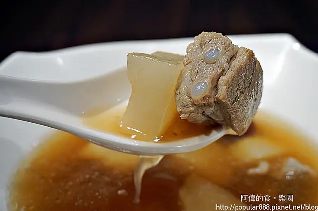 湯裡有兩塊排骨肉,這塊的油脂較多,蠻香甜的