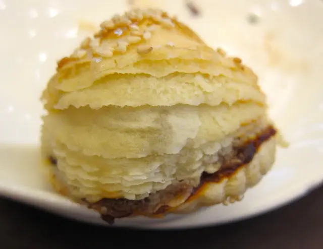 包著甜中帶鹹的叉燒肉末,半液狀的肉末醬汁讓叉燒酥不乾