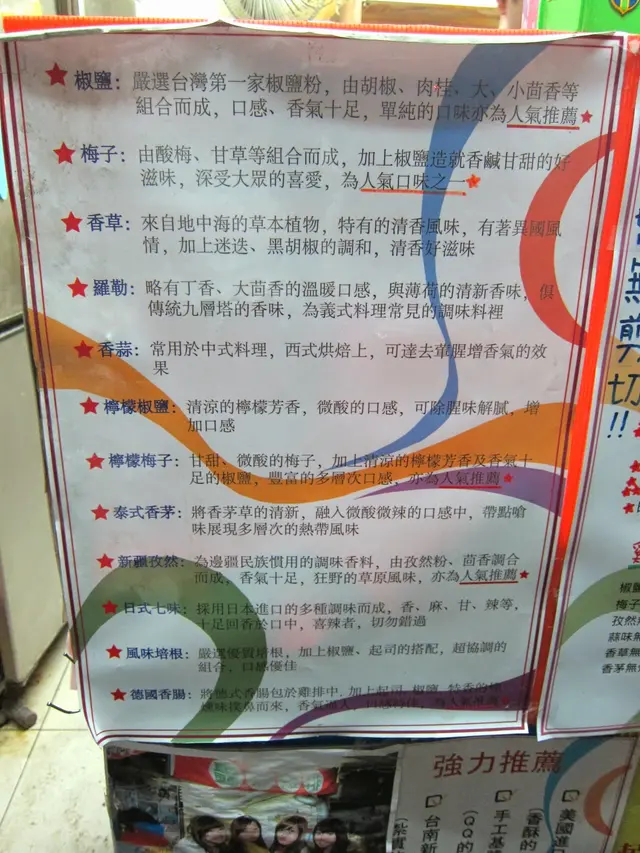 這裡的特色除了爆雞起司外,還有各種口味的調味粉