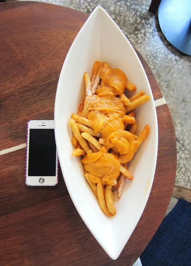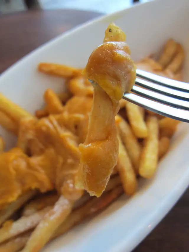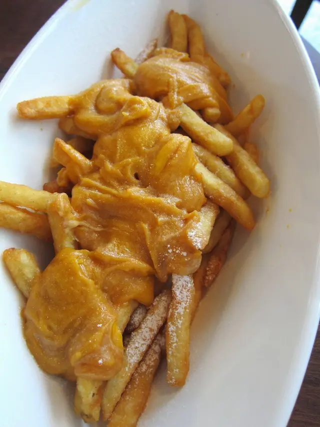 花生和起司的存在感並駕齊驅,誰也沒有搶過誰的風頭,這兩個味道都是我的愛~所以真是吃得超級過癮!不過也因為醬很濃厚,加上薯條本來就是比較乾的食物,吃多了難免會有點口渴~