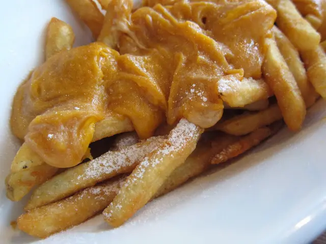 除了花生與起司一甜一鹹的味道,另外被灑到比較多糖粉的地方,糖粉的味道也很明顯喔!既然沒有胃可以留給甜點,就把這份薯條當作半甜點好了~這份薯條分量真的很多,即使沒有吃午餐,我還是吃一半就飽了,剩下很多好可惜,打包帶走~