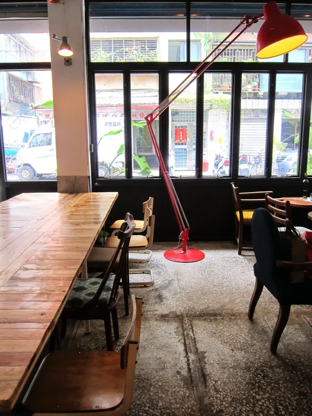 角落的三組不同顏色的木椅有點可愛,加上窗邊透進來的自然光,氣氛很舒服,就決定坐這裡了!
