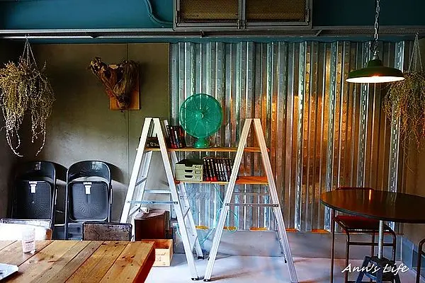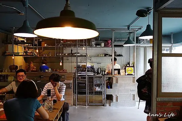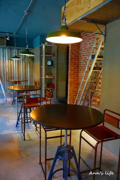 還沒有進入下午茶高峰潮,我們一行四人幸運的不用等候就有位置,餐廳裡的裝潢是極具個性的工業風,略微隨性粗獷卻又不覺距離感太重,高矮不一、材質各樣的桌椅,在以文青為主的咖啡廳裡早已經見怪不怪,甚至紅磚牆、水泥地搭配手感木桌,都可以矛盾卻不突兀。