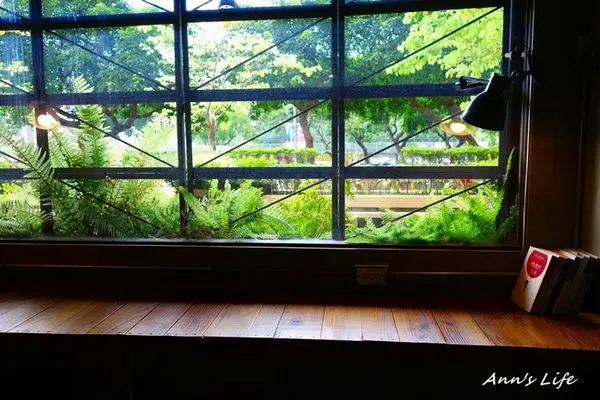 如果是一個人來,我鐵定選窗邊位兒,採光佳又面對一窗綠,視覺很明亮舒暢,牆角擺了幾本自由取閱的精選書,還有可供筆電充電的插座,最適合喜歡抱著電腦在咖啡廳窩一下午的人(例如我)。
