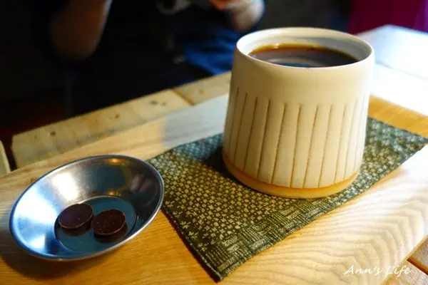 這裡的單品咖啡光看名稱就很特別,並專業的區分為淺烘培、中烘培和深烘培,對於嗜喝咖啡且小有研究的人來說比較能夠投其所好,我分明記得Anita想挑一款酸味較不明顯的口味,卻選了理應酸味強烈的淺烘培豆哥倫比亞 薇拉森林 聖奧古斯汀,不曉得有沒有合她大美人的喜好?另外,隨咖啡附上兩顆巧克力圓片,可以一邊啜飲咖啡香,一邊品嘗巧克力原味。話說回來,我愛死了這咖啡的擺盤,尤其是極具京都風格的的杯子和杯墊,就像在奔放的美式工業風咖啡館裡,遇上拘謹端莊的日本女性,實在是衝突而美麗啊!