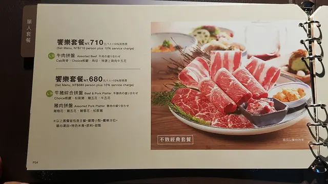 這次則是來參考新推出的饗樂套餐,以牛肉、牛豬、豬肉拼盤為搭配的精選組合