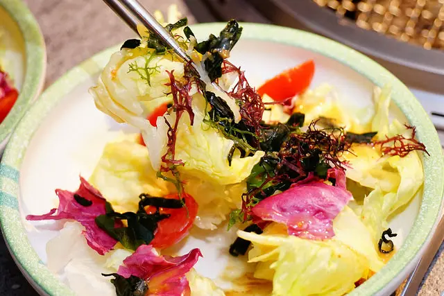 把烤好的肉片來包上生菜享用,也是吃燒肉時的不一樣的清爽吃法