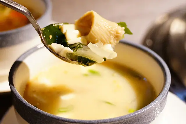 吟釀味噌湯,內裡也給的很多有魚肉片加上豆腐海帶味噌的香味鹹度很好喝
