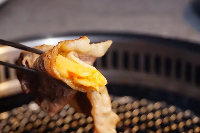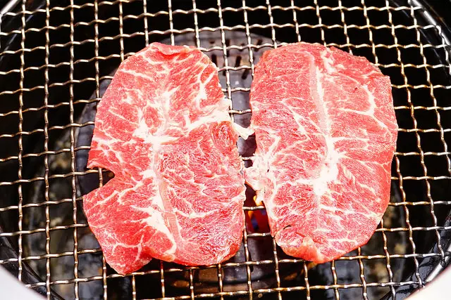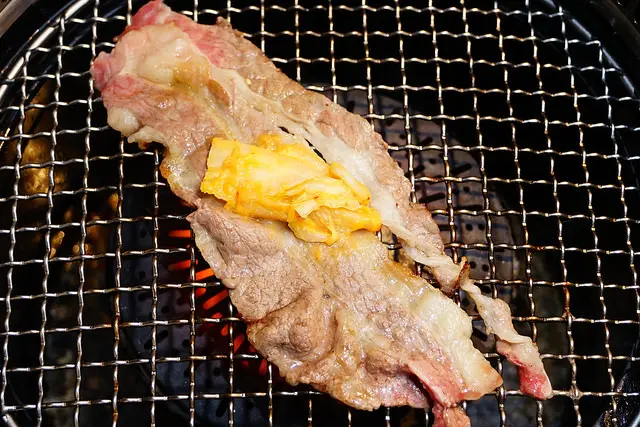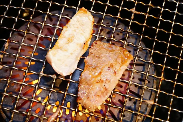 相當有厚度的豬五花肉,上頭的醬香和油脂整塊給烤網帶來不小油花感